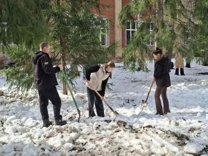 Местные жители занялись уборкой прилегающих к учреждениям территорий.