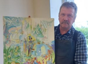 Мастер Дома ремесел владеет множеством художественных техник: резьбой по дереву, живописью, создает изделия из гипса и скульптурные композиции из глины